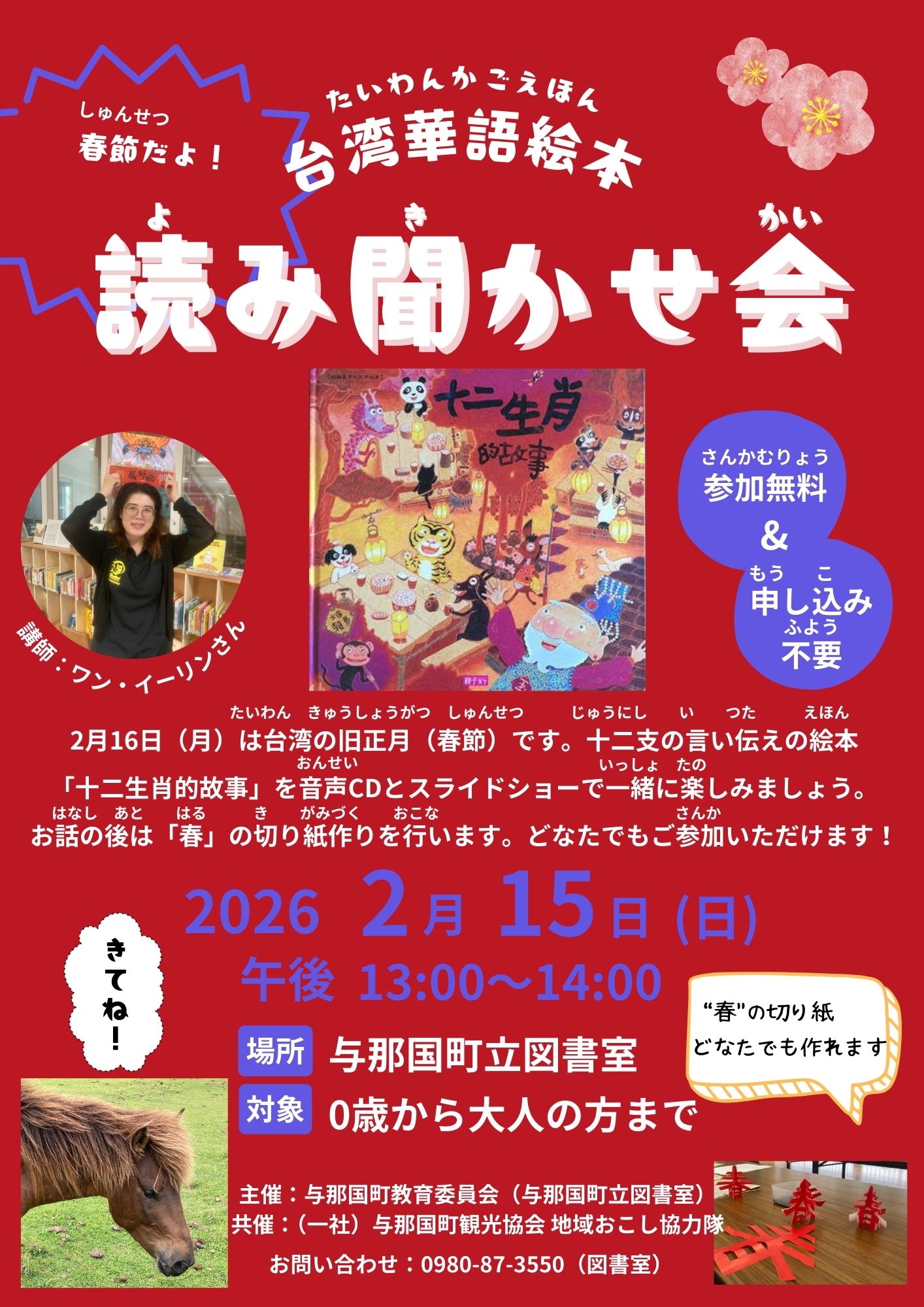 New!! 「春節だよ!台湾華語絵本読み聞かせ会」開催のお知らせ