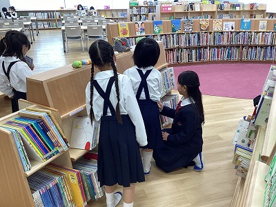 図書館では本を借りたり、返しに来たりする1年生の姿がみられるようになりました。
