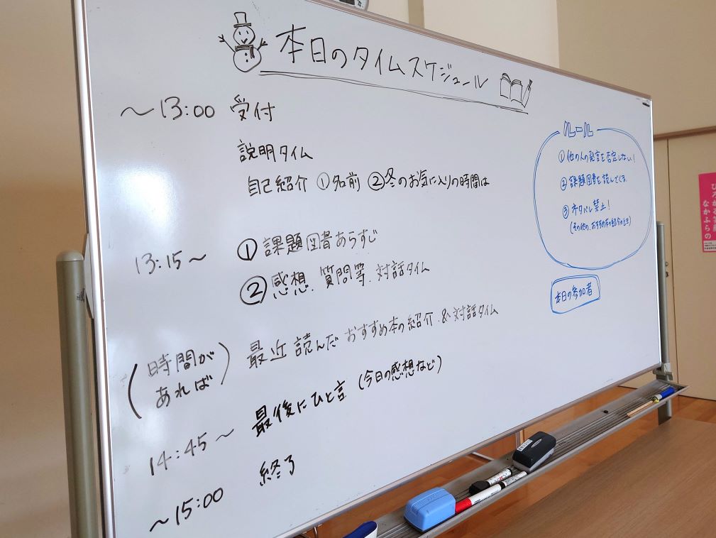 2月2日、にちよう読書会inなかまーるを開催しました。本を通した交流の場として楽しくお話できるイベントを行いたいと思い、企画しているイベントです。
