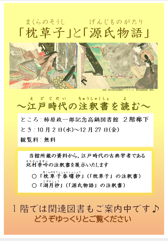「枕草子」と「源氏物語」の江戸時代に書かれた解説書を展示中です♪